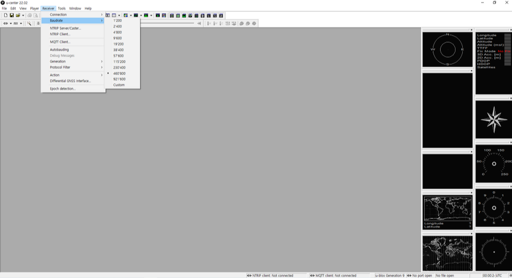 Window 10 Ublox ZED-f9p U-Center v22.02 1. U-Center 설치 U-Center를 여기에서 다운로드한다. 현재 GPS를 이용한 자율주행 자동차를 Linux 환경에서 개발 중이지만, U-Center는 Linux를 지원하지 않으므로 Window 환경에서 GPS 수신 주기만 변경해주었다. Window가 아닌 Linux 환경에서 U-center를 사용하고 싶다면 Wine을 통해 사용 가능하다. (Wine 설치 방법은 예전에 포스팅해두었으니 여기를 참고하면 된다.) 2. U-Center에 GPS보드 연결 U-Center 설치를 완료허였으면 U-center를 실행한 후 GPS 보드를 연결해준다. 왼쪽 상단의 Receiver-> Baudrate 를 누르고 사용하는 보드에 맞는 Bau..